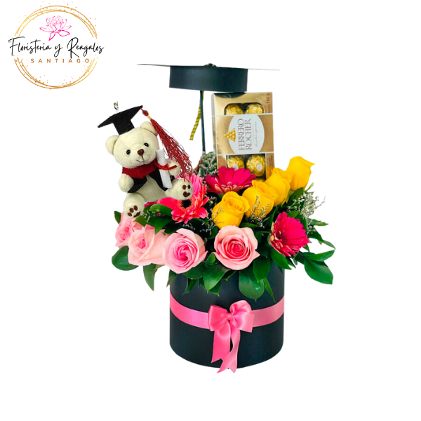 InicioGRADUACION BOX PRIMAVERAL PELUCHE 11 CM + FERREROS 100G Y BIRRETE