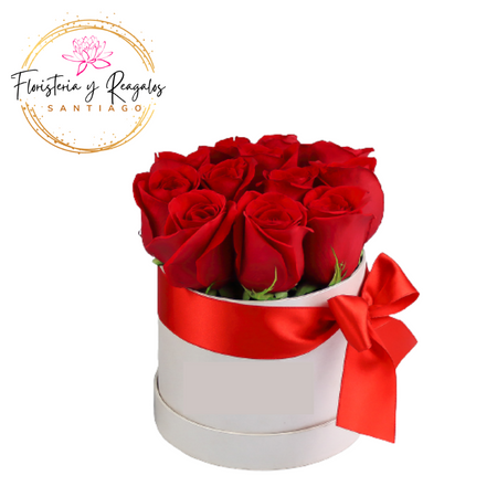 CAJA BOX DE 12 ROSAS IMPORTADAS Y FOLLAJE