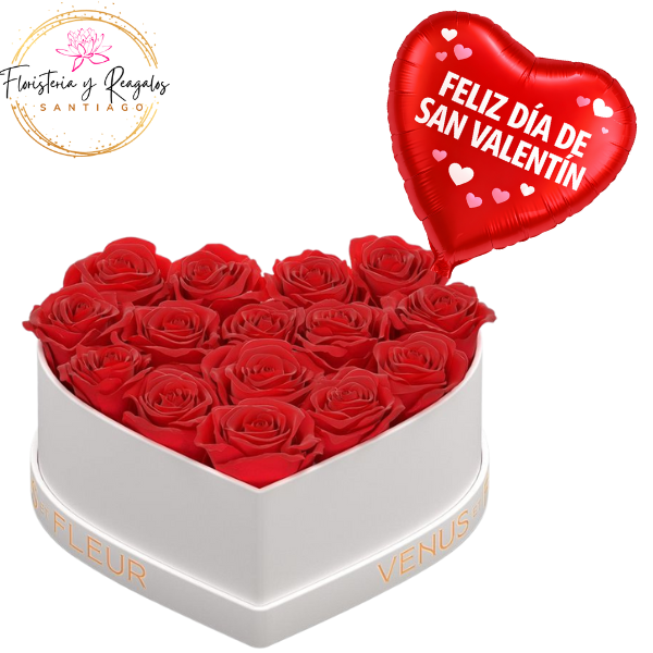 CAJA CORAZON AMOR ETERNO CON 15 ROSAS JABON + GLOBITO