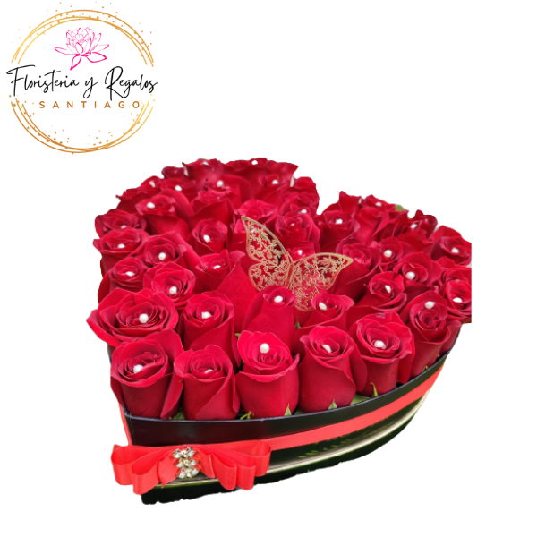 CAJA CORAZON DE 40 ROSAS ECUATORIANAS