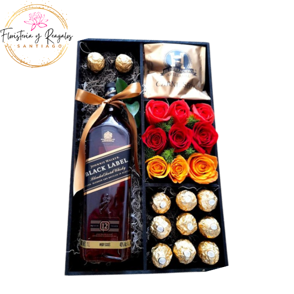CAJA DIVISORA WHISKY, 11 BOMBONES, 9 ROSAS Y BROWNIE