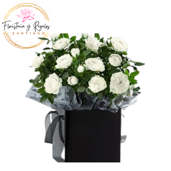 CAJA FLORAL 12 ROSAS Y FOLLAJE