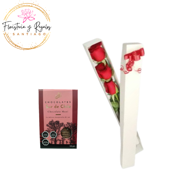 CAJA VISORA DE 3 ROSAS + BOMBONES DEL SUR