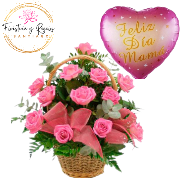 InicioFLORES Y RAMOS DIA DE LAS MADRES CANASTA DE 12 ROSAS Y GLOBO