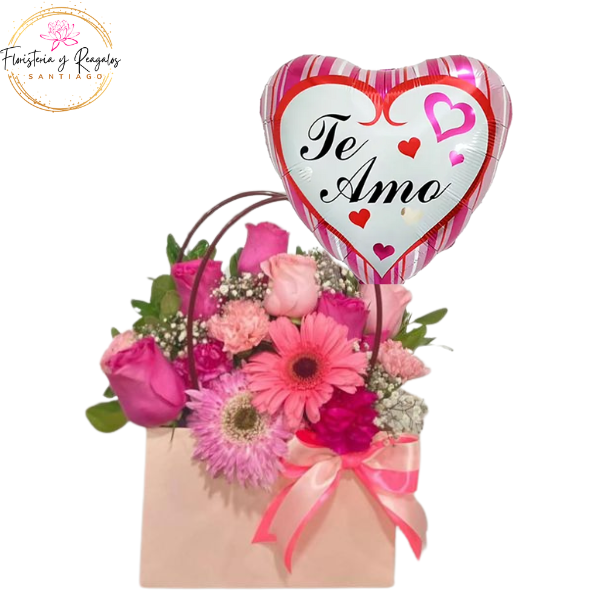 CARTERA DIA DE LA NOVIA DE 7 ROSAS, 2 GERBERAS Y GLOBO