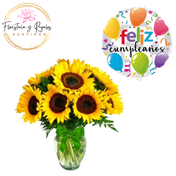 InicioREGALOS DE CUMPLEAÑOS FLORERO DE 10 GIRASOLES + GLOBO