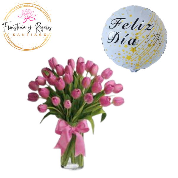 FLORERO DE 20 TULIPANES + GLOBO