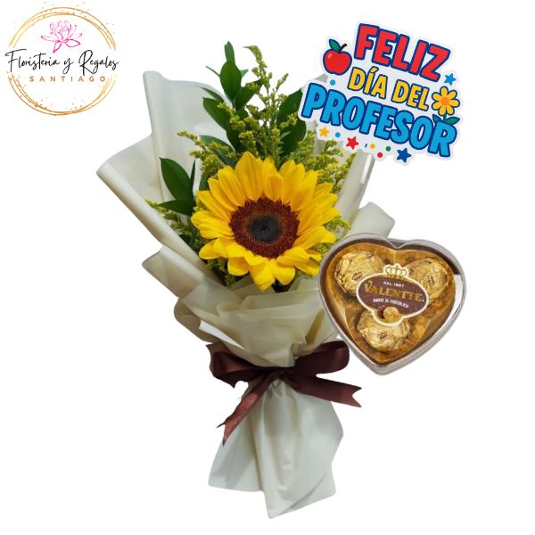 GIRASOL DIA DEL PROFESOR CON BOMBONES CORAZON Y TOPPER