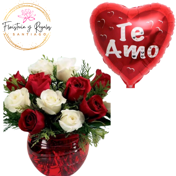 InicioANIVERSARIO PECERA DE 12 ROSAS + GLOBO
