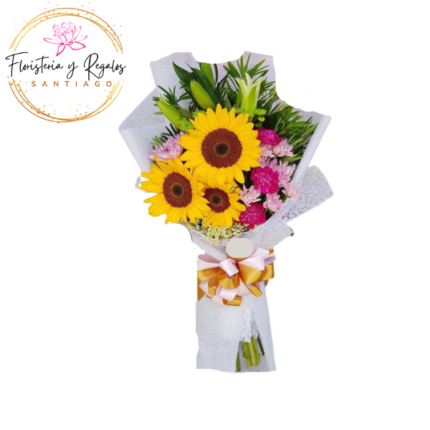 RAMO SANTIAGO DE 3 GIRASOLES JABON Y GLOBO METALIZADO $11.790