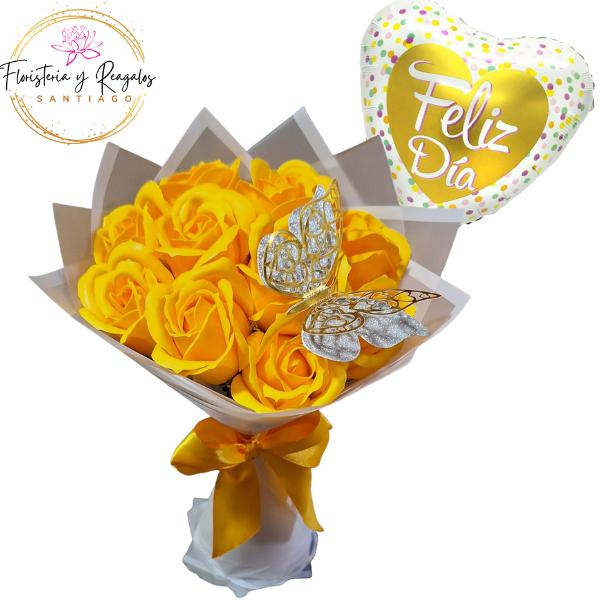RAMO 15 ROSAS JABON, MARIPOSA Y GLOBO