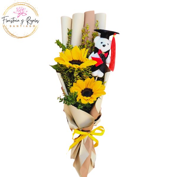 RAMO 2 GIRASOLES Y PELUCHITO GRADUADO