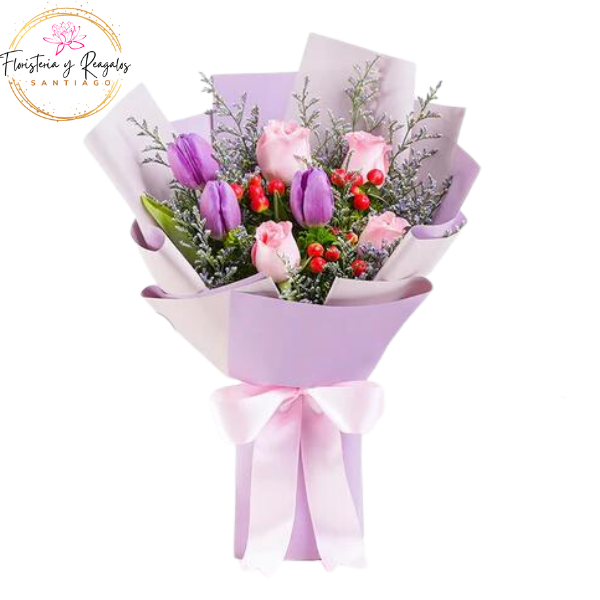SKU: FYR.2158 Categorías: DIA DE LA SECRETARIA, DIA DE LOS ENAMORADOS MUJER, FLORES MORADAS, GRADUACION, NACIMIENTO, RAMOS FLORALES, RECUPERATE PRONTO, TULIPANES OFERTAS