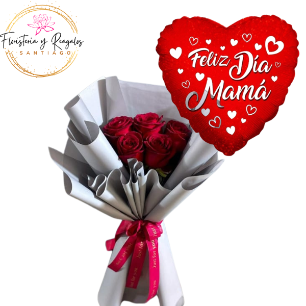 RAMO 6 ROSAS ENVOLTURA ABIERTA Y GLOBO