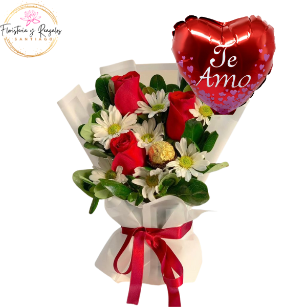 RAMO AMOR DE 3 ROSAS, 1 BOMBON Y GLOBITO