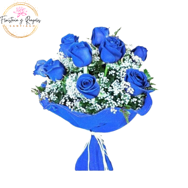 RAMO BOUQUET 10 ROSAS AZULES $31.990
