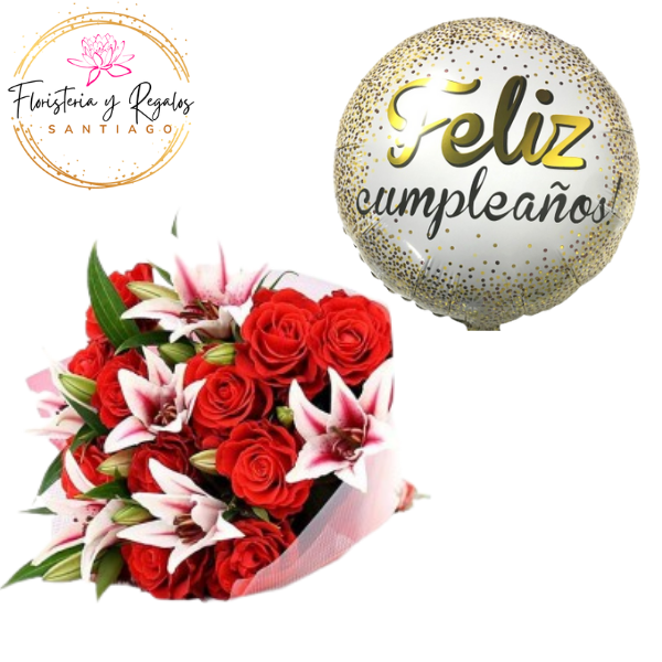 RAMO DE 10 ROSAS 5 LILIUM + GLOBO