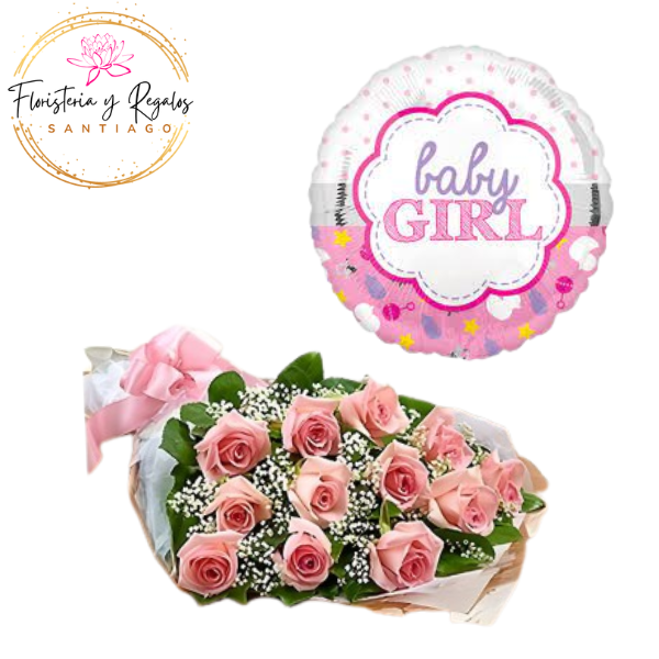 RAMO DE 12 ROSAS BOUQUET + GLOBO