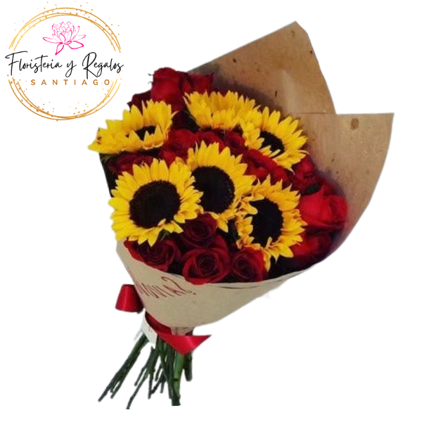 RAMO DE 12 ROSAS Y 6 GIRASOLES