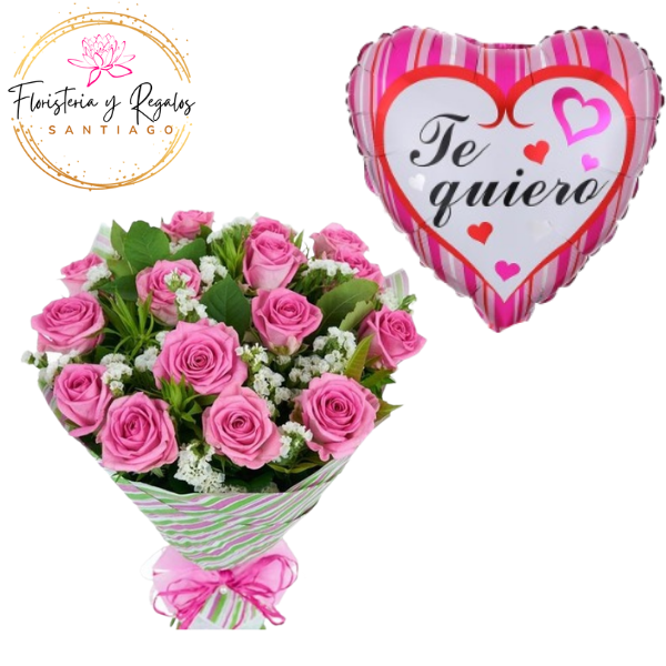RAMO DE 15 ROSAS, FOLLAJE Y GLOBO