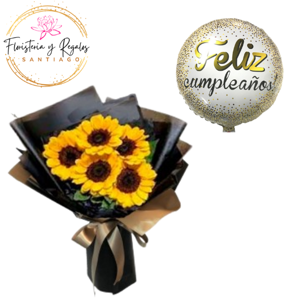 RAMO DE 5 GIRASOLES + GLOBO