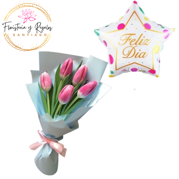 RAMO DE 5 TULIPANES + GLOBO