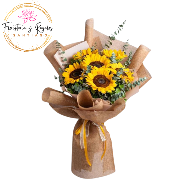 RAMO DE 6 GIRASOLES CON ENVOLTURA ELEGANTE DE ARPILLERA
