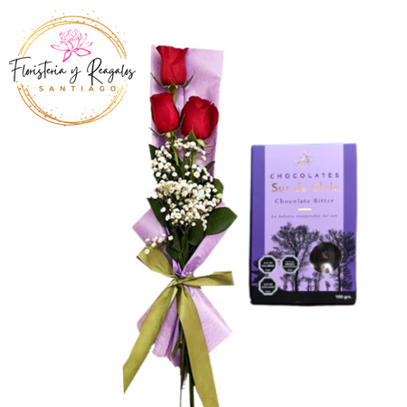 RAMO MIRLA 3 ROSAS + BOMBONES DEL SUR