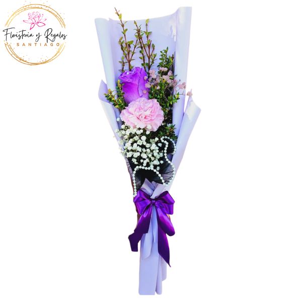 RAMO MORADO CON 1 ROSA Y 1 CLAVEL