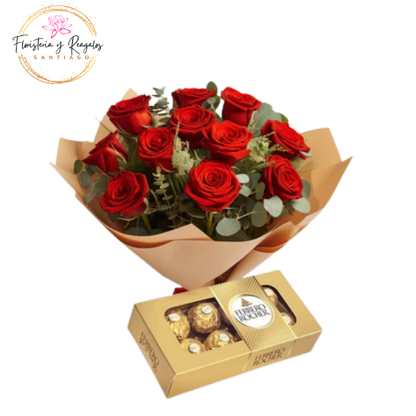 InicioREGALOS DE CUMPLEAÑOS RAMO SANTIAGO DISPERSO 12 ROSAS Y FERREROS 100G