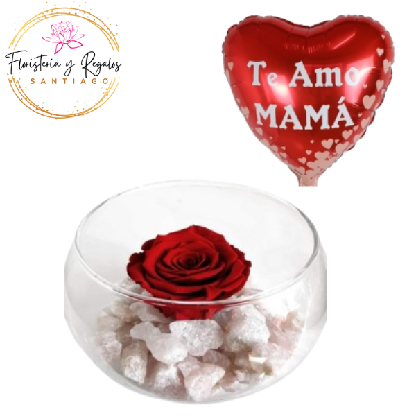 ROSA PRESERVADA EN PECERA CON GLOBO