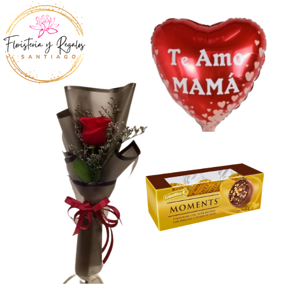 InicioFLORES Y RAMOS DIA DE LAS MADRES ROSITA CON ENVOLTURA + CAJA DE BOMBONES Y GLOBO